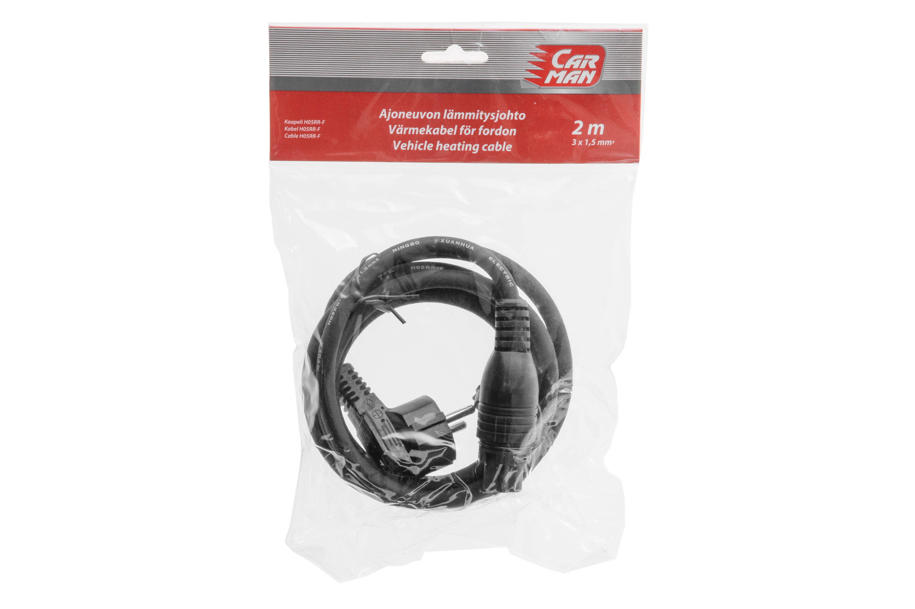 Pituus 2,5 m. F 3 x 1,5 mm² H07BQ-tyypin kaapeli. Luotettava Defa-yhteensopiva auton lämmitysjohto. Testattu liittyvien standardien mukaisesti, kestää Suomen lainsäädännössä vaaditun kylmätaivutuskokeen -50°C lämpötilassa. Soveltuu käytettäväksi myös kaikkein kylmimmissä olosuhteissa.