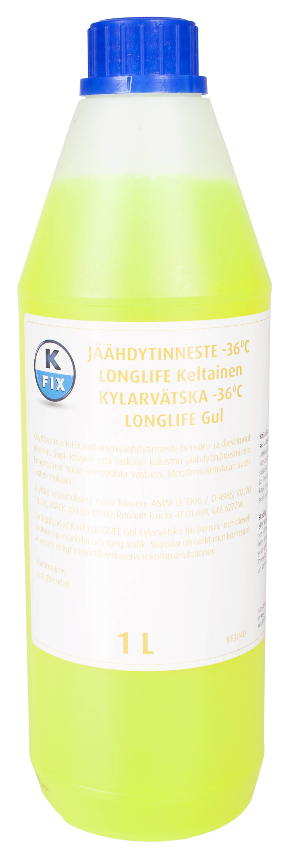 Käyttövalmis K-Fix jäähdytinneste bensiini- ja dieselmoottoreihin. Sopii kevyen ettæ raskaan kaluston jäähdytinjärjestelmiin. Erinomainen suoja korroosiota vastaan