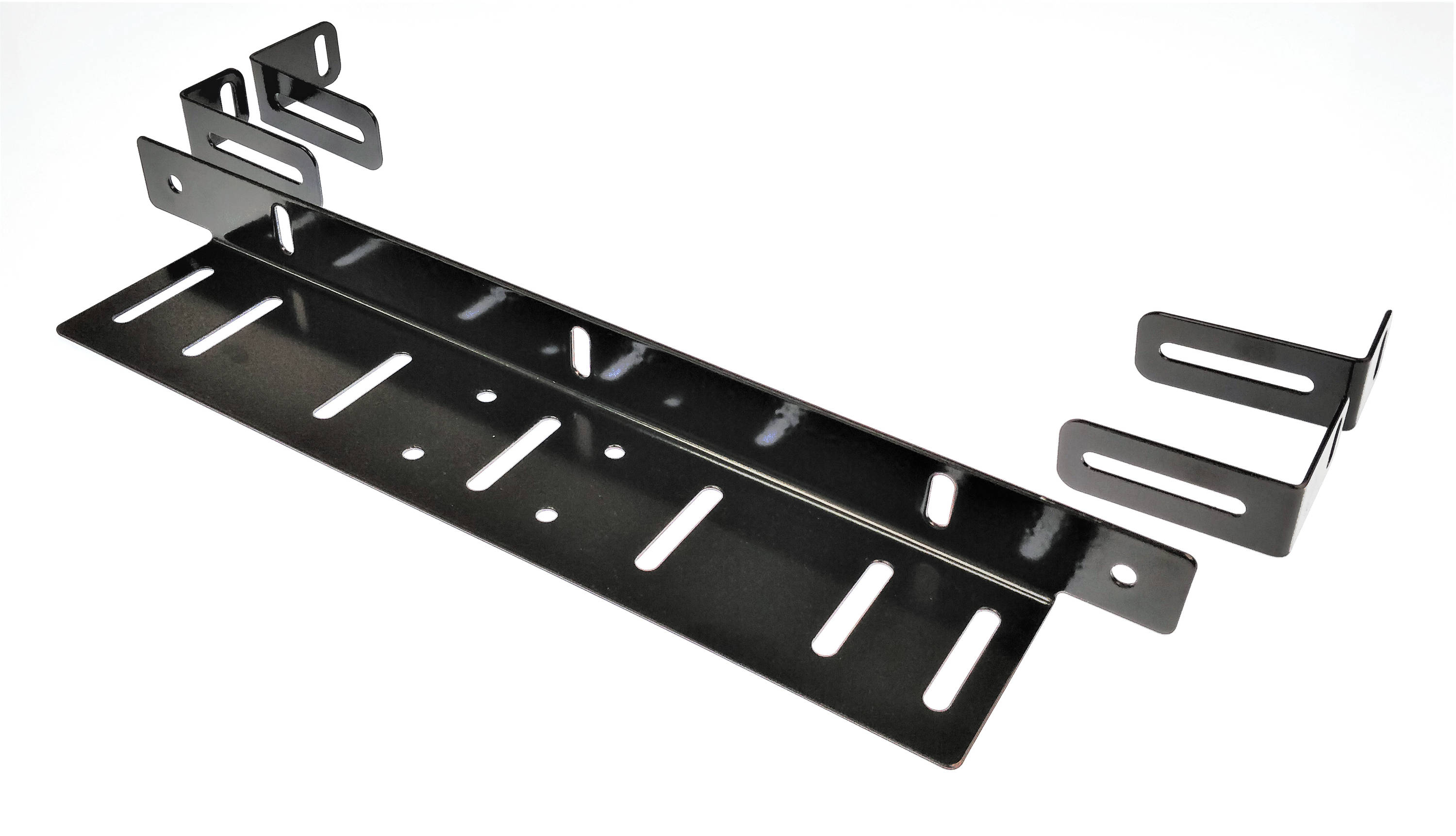 Universaali säädettävä lisävaloteline. Mahdollistaa lisävalopaneelin tai lisävalojen kiinnityksen rekisterikilven ylä- tai alapuolelle. Asennetaan rekisterikilven ja puskurin väliin. Erilliset säädettävät päätykiinnikkeet mahdollistavat laajan sopivuuden eri lisävaloille. Maalattua terästä.