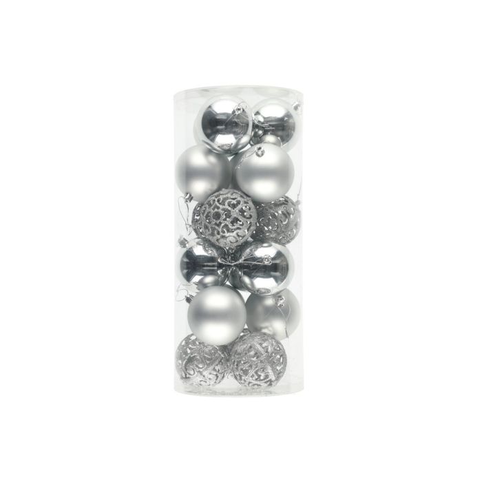 Pakkaus sisältää joulupalloja kolmella erilaisella viimeistelyllä (kiiltävä, matta ja koristeleikattu), näin saat nopeasti kartutettua erilaisten koristeiden kokoelmaasi ja voit loihtia monipuolisia ja näyttäviä koristeluita. Valmiiksi kiinnitetyt ripustusnarut.