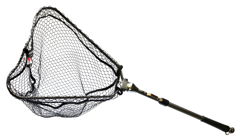 Näppärä kokoontaitettava kolmion mallinen haavi alumiinisella teleskooppi varrella.