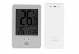 Digitaalinen langaton lämpömittari. Digitaalinen lämpömittari modernilla designilla sisä- ja ulkolämpötilan mittaukseen. Langaton malli 12/24 tunnin kellonäytöllä. Mittausalue... Lue lisää