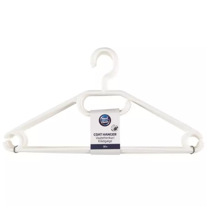 Kierrätysmuovista valmistettu vaatehenkari kääntyvällä koukulla. Vaateripustimet auttavat pitämään kaapit järjestyksessä ja vaatteet siisteinä. -10 kappaletta