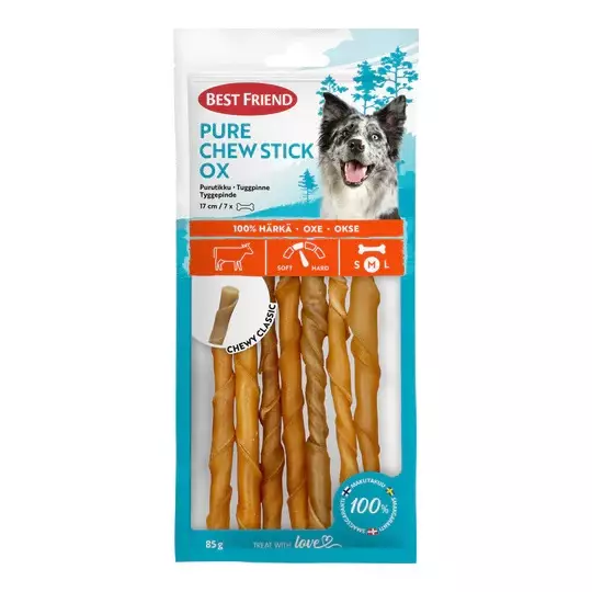 Best Friend Pure Chew Sticks ovat 100 % naudannahasta valmistettuja, erittäin maukkaita koiran purutikkuja.