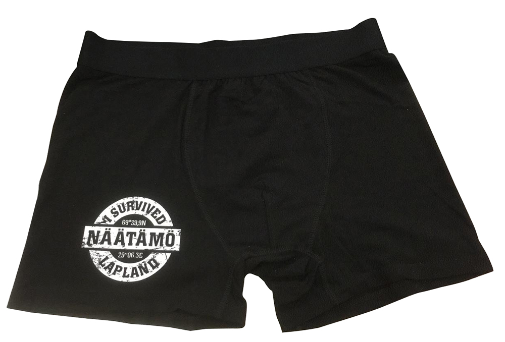 Mustat bokserit Näätämö logolla! Valkoinen logo. Valitse kokosi. Materiaali: 95 % puuvillaa, 5 % elastaania.