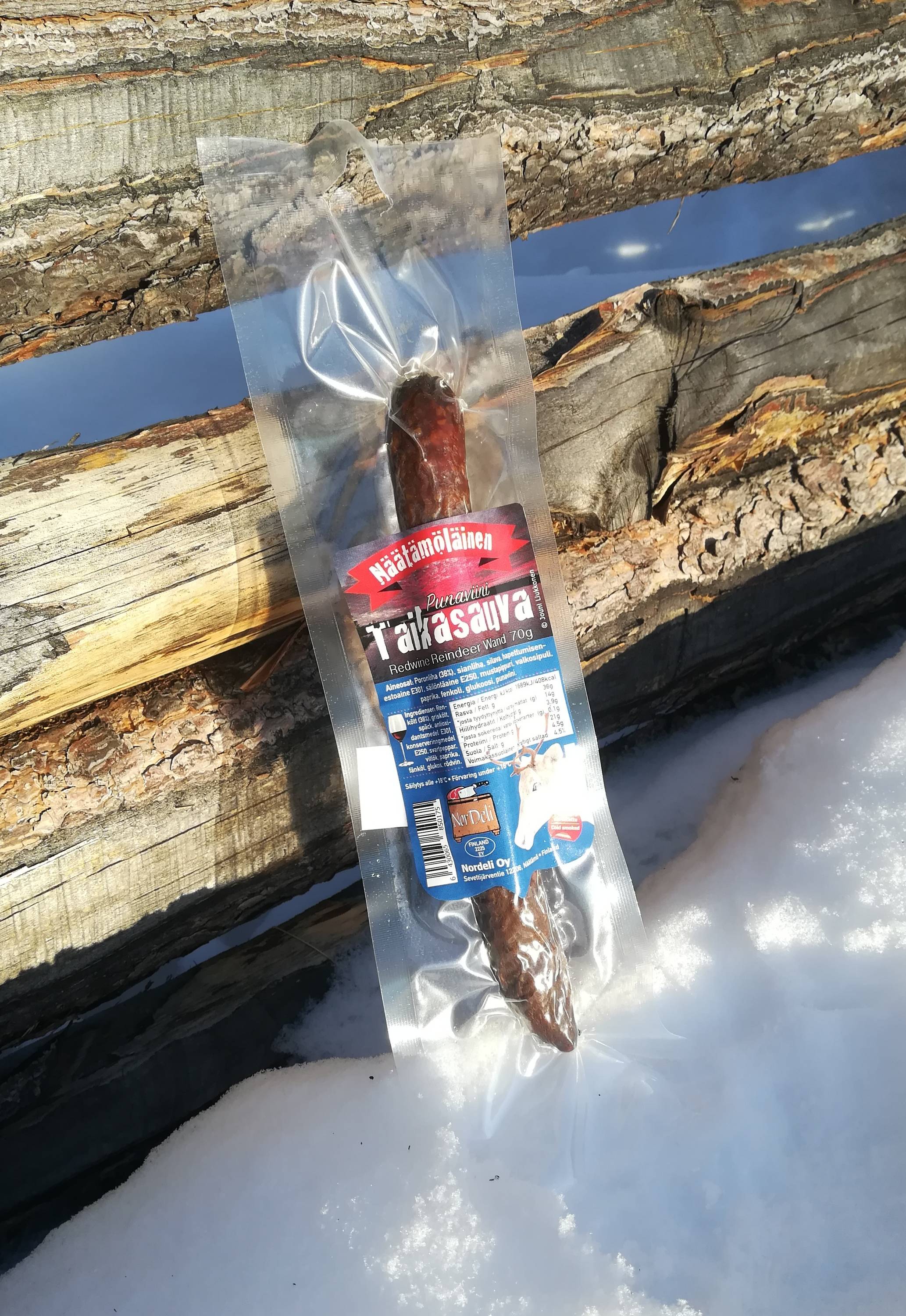 Ainesosat: Poronliha (38%), sianliha, silava, hapettumisenestoaine E301, säilöntäaine E250, mustapippuri, valkosipuli, paprika, fenkoli, glukoosi, punaviinii.