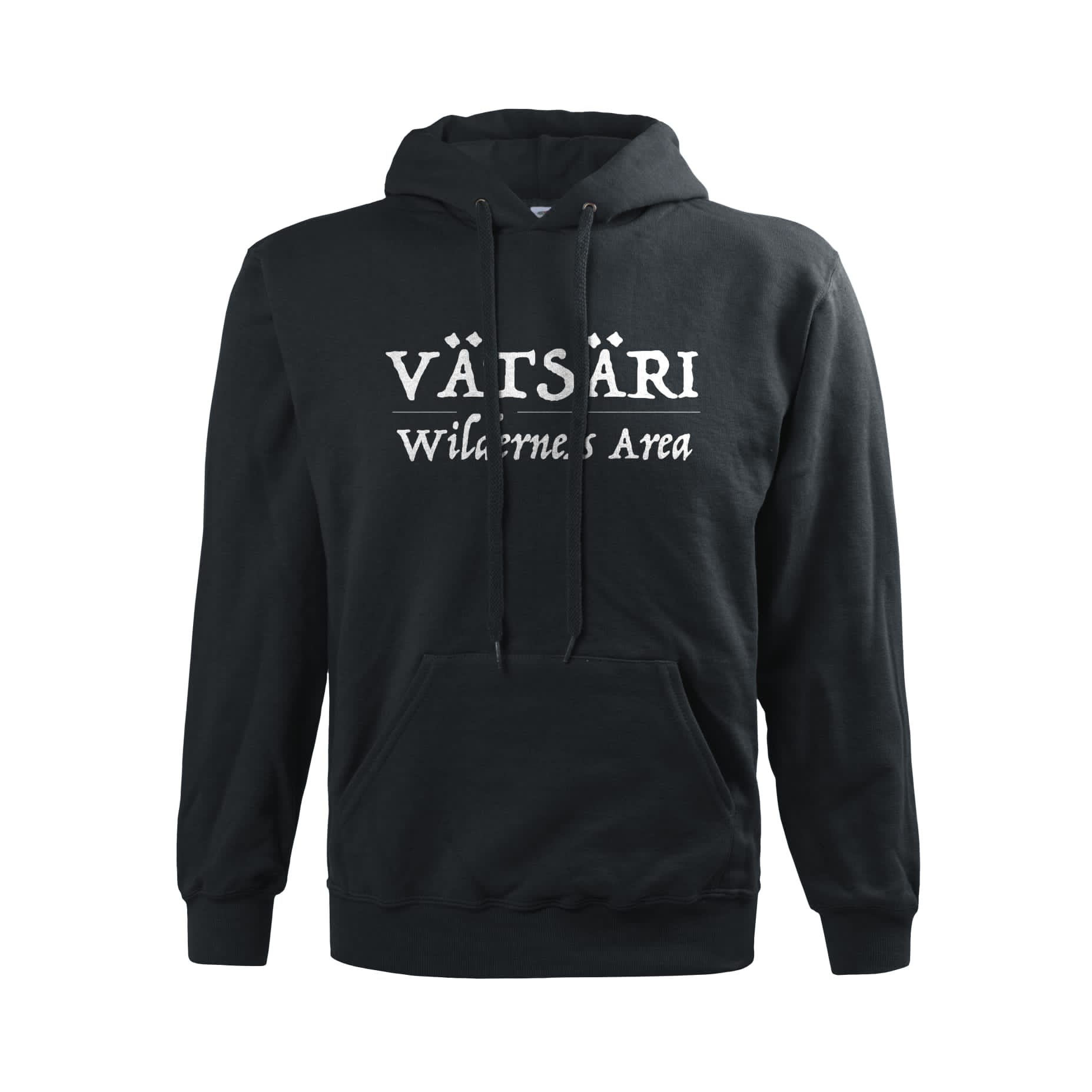 Musta valkoisella Vätsäri Wilderness area tekstillä