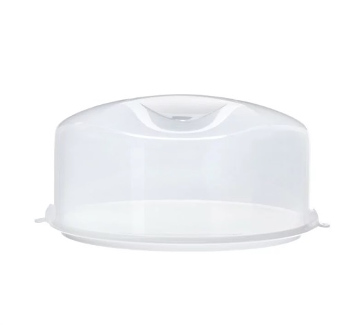 Kannettava kakkukupu kahvalla ja kätevillä sulkijaklipseillä, jotka liittävät kuvun kakkuvatiin. Ison kuvun alle mahtuvat isommatkin kakut.