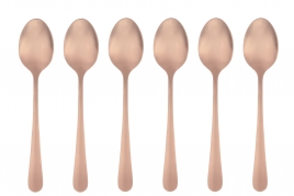 Tyylikkäät ruusukullanväriset kahvilusikat kruunaavat juhlavan tarjoilun. Ruostumaton teräs on pinnoitettu kestävällä PVD-pinnoitteella. Pituus 14,2 cm. Vahvuus 1,2 mm. Konepesun kestävä.... Lue lisää