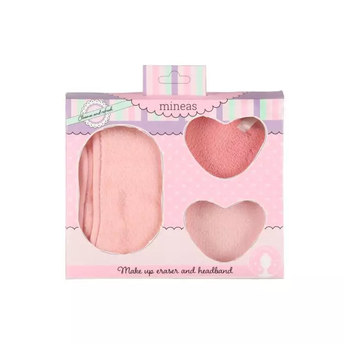 Pakkaus sisältää kaksi pehmeää meikinpoistoliinaa ja pehmeän hiuspannan, jonka avulla hiukset pysyvät pois kasvoilta.