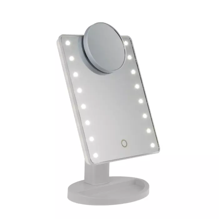 Tämä valaisinpeili tekee meikkauksesta ja ihonhoidosta huomattavasti helpompaa. Peilin koko on noin 28 x 20 cm, ja siinä on sisäänrakennettuna 16 kirkasta LED-valoa, jotka tarjoavat yhtenäistä ja häikäisemätöntä valaistusta. Suurennusominaisuus auttaa tarkempaan työskentelyyn, kuten silmien rajaukseen ja ihon hoitoon. Käyttövoimana toimii 4 kpl AA-paristoa, mikä tekee siitä siirrettävän ja joustavan käyttää myös ilman lähellä olevaa pistorasiaa – käytännöllinen vaihtoehto kylpyhuoneeseen, meikkipöydälle tai matkalle sopivaan luksukseen.