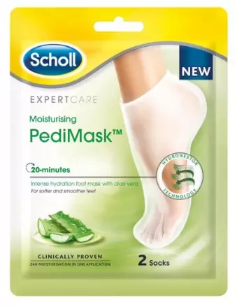 Scholl PediMask Aloe Vera -jalkanaamio on Schollin asiantuntijoiden kehittämä jalkanaamio, joka on suunniteltu erityisesti jalkojen kuivalle iholle. Jalkanaamio sisältää muun muassa erittäin kosteuttavaa aloe veraa, joka kosteuttaa jalkojasi nopeasti, tehokkaasti ja pitkäkestoisesti. Jo yhdellä käyttökerralla saat intensiivista kosteustehoa, vain 20 minuutissa. Kevyt koostumus jättää ihosi sileäksi ja raikkaan tuntuiseksi. Pitää ihosi kosteutettuna jopa 24 tunnin ajan. Kaikkien Scholl jalkanaamioiden teho on kliinisesti todistettu. Sukanmuotoista naamiota on helppo käyttää. Pakkaus sisältää yhden jalkanaamioparin.
