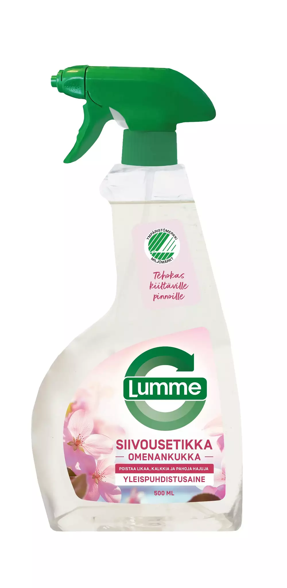 Joutsenmerkitty Lumme Siivousetikka sisältää luonnollista etikkaa, joka tehoaa kalkkiin ja likaan, raikastaa ja tuo kiiltoa – erityisen hyvä kiiltäville pinnoille. Tuotteessa on ihana omenankukan tuoksu.