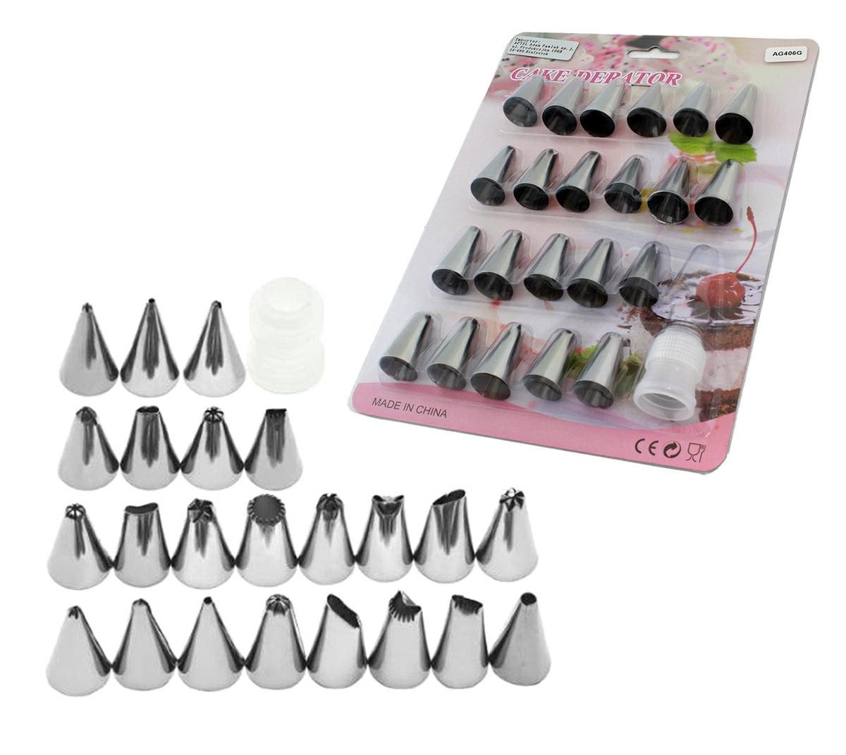 24 tyllasarja. 23 tyllakärkeä + 1 tyllasovitin. Kärkien mitat 1,8 cm x 3,2 cm