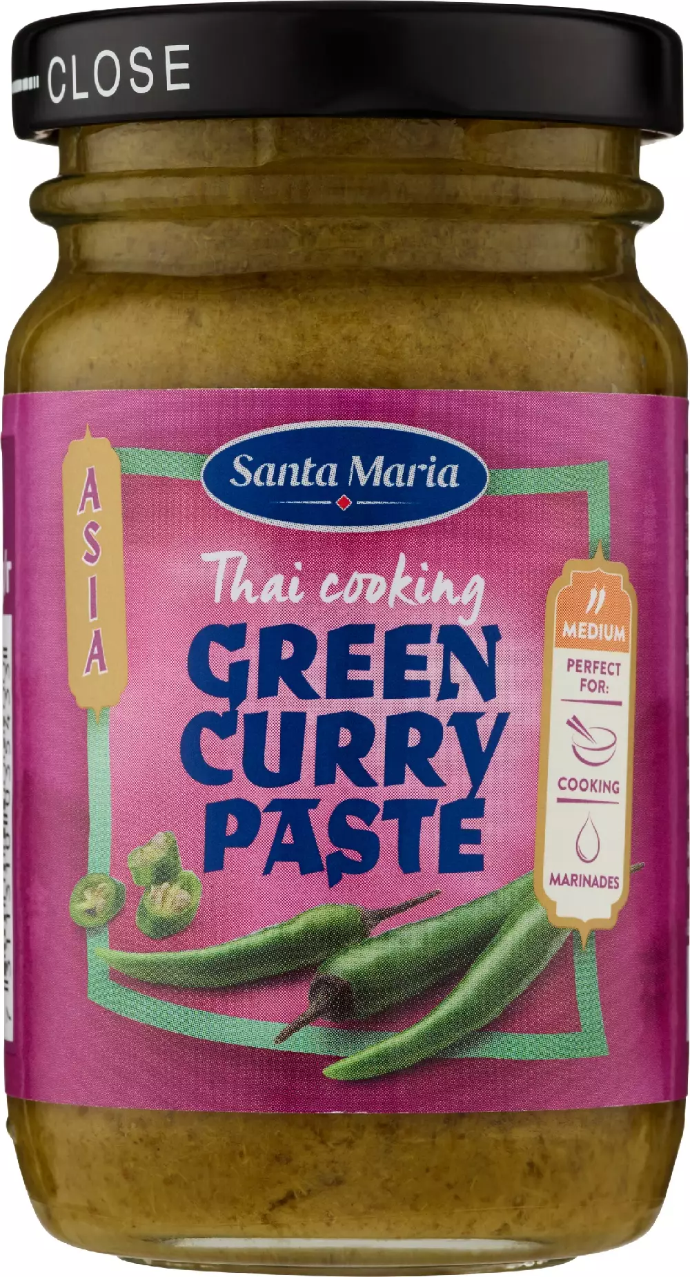 Santa Maria Green Curry Paste Vihreä Currytahna 110 g tuo thaimaalaisen curryruoan täyteläisen maun vihreän chilikombinaation, sitruunaruohojen ja galangan avulla.