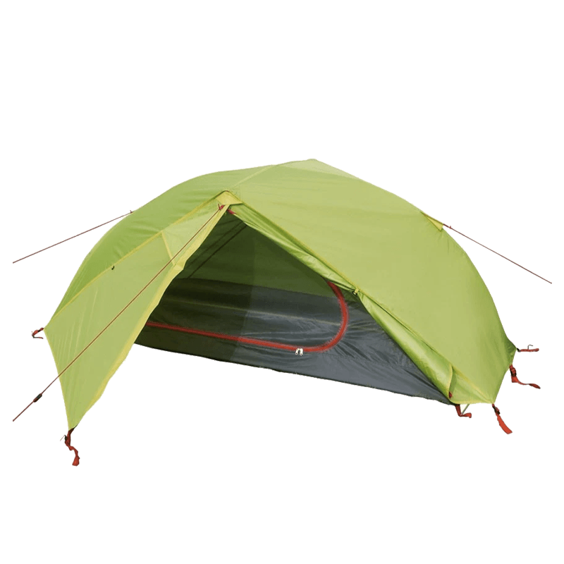 Helposti pystytettävä, kevyt, teipatuilla saumoilla, absidilla sekä duralumiinikaarilla varustettu kupoliteltta 1 aikuiselle.