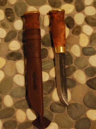 Käsintehty leukupuukko Kauhavalta. Terän pituus 15cm.