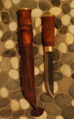 Käsintehty 2-osainen leukupuukko Kauhavalta. Terien pituudet 15 cm ja 8,5 cm.