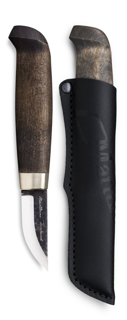 Puukossa on musta nahkatuppi Marttiini-logopainatuksella.