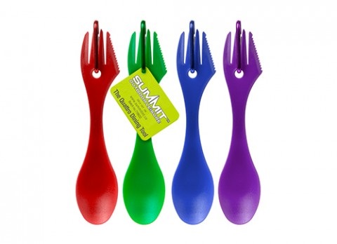 Tässä äärimmäisen tilaa säästävässä keittiövälineessä yhdistyvät haarukka, lusikka ja hammastettu terä vastaamaan retkeilijän tarpeita. Tämä kevyt, kestävä ruokailuväline on ihanteellinen retkeilyyn, patikointiin tai kalastusretkille, ja se säästää tilaa repussa. Sen mukana tulee kätevä karabiini, joka kiinnittää sen turvallisesti reppuihin jne.