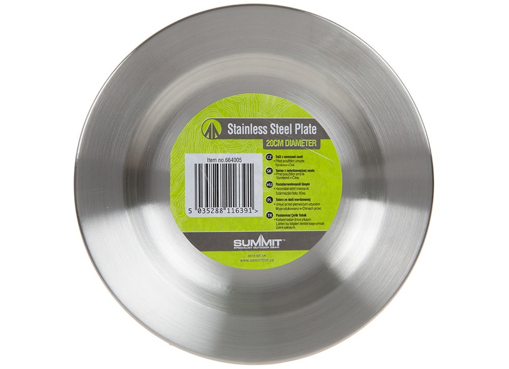 Summit teräslautanen on valmistettu kestävästä, ruostumattomasta teräksestä ja sen kaareva muoto mahdollistaa käytön sekä lautasena että kulhona. Halkaisija 20cm Paino 170g... Lue lisää