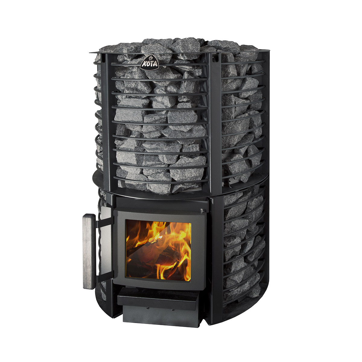 Kota Inarissa yhdistyvät näyttävyys sekä Kota -kiukaan kestävä laatu. Kiuas antaa pehmeät löylyt runsaan kivimäärän ansiosta.