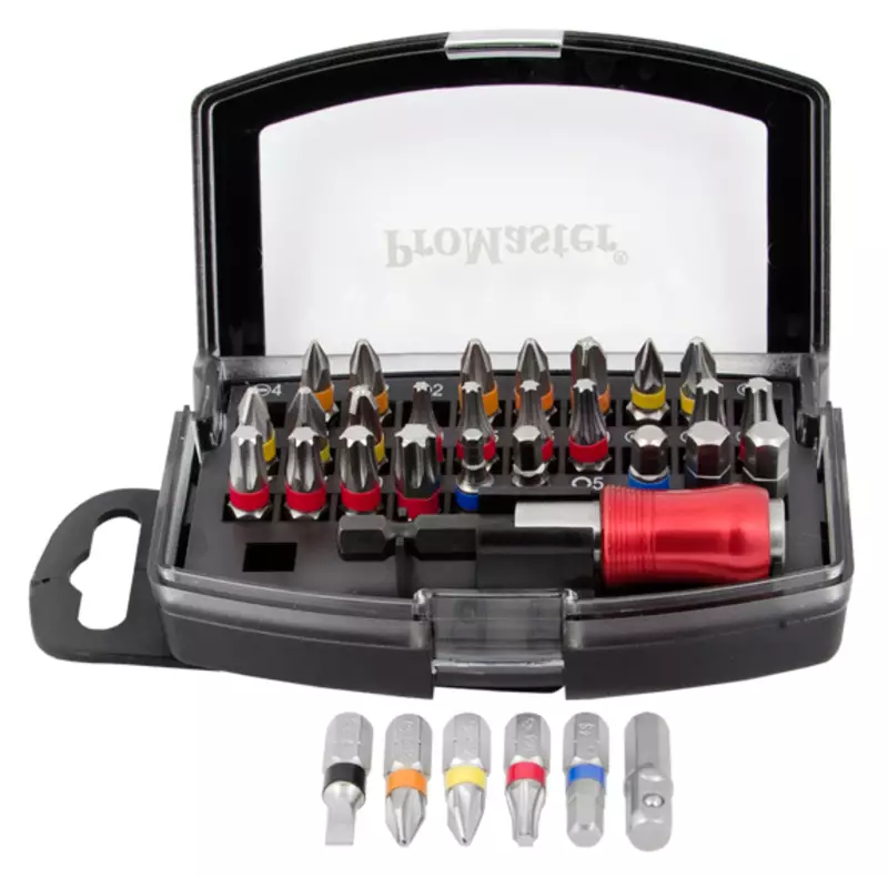 32-osainen kärkisarja värikoodatuilla ruuvauskärjillä helpottaa oikean kärjen valintaa nopeasti ja vaivattomasti. Sarja sisältää yleisimmät ruuvikärjet urille, ristipäille, kuusiokoloille ja Torx-ruuveille. Mukana kätevä kärkipidin pikalukituksella, 1/4" hylsyadapteri ja vyöklipsi. Soveltuu monipuolisiin asennus- ja huoltotöihin niin kotona kuin työmaalla.