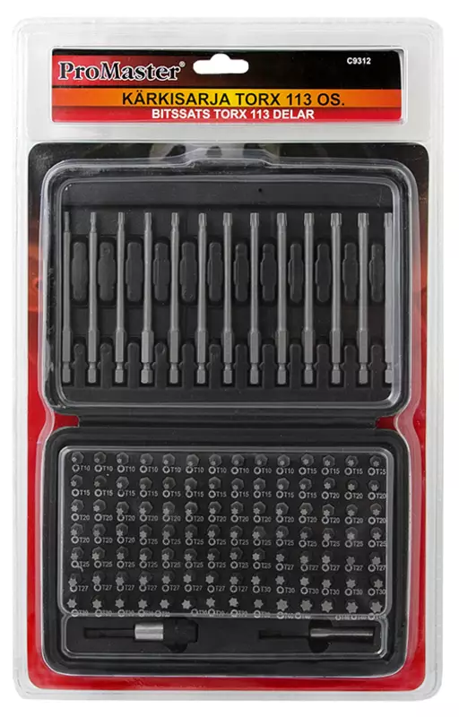 Laadukas 113-osainen torx-kärkisarja vaativaan käyttöön. Sisältää kattavan valikoiman TORX-ruuvauskärkiä eri kokoisina, joten se soveltuu monipuolisesti eri kohteisiin. Käytännöllinen säilytysrasia helpottaa järjestystä ja kuljettamista. Erinomainen valinta ammattilaiselle tai harrastajalle, joka tarvitsee laajan ja luotettavan kärkisetin.