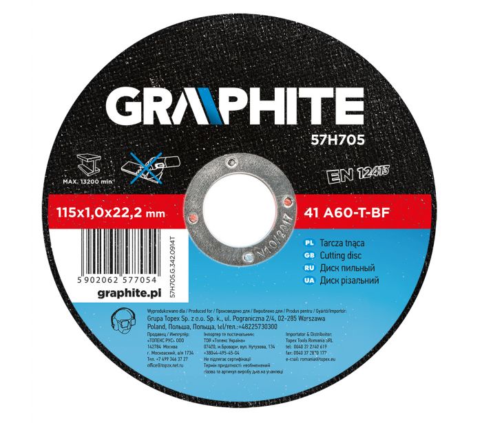 Katkaisulaikka metallille Halkaisija 115 mm Paksuus 1.0 mm Keskireikä 22 mm Max. kierrosnopeus 12 200 rpm EN 12413