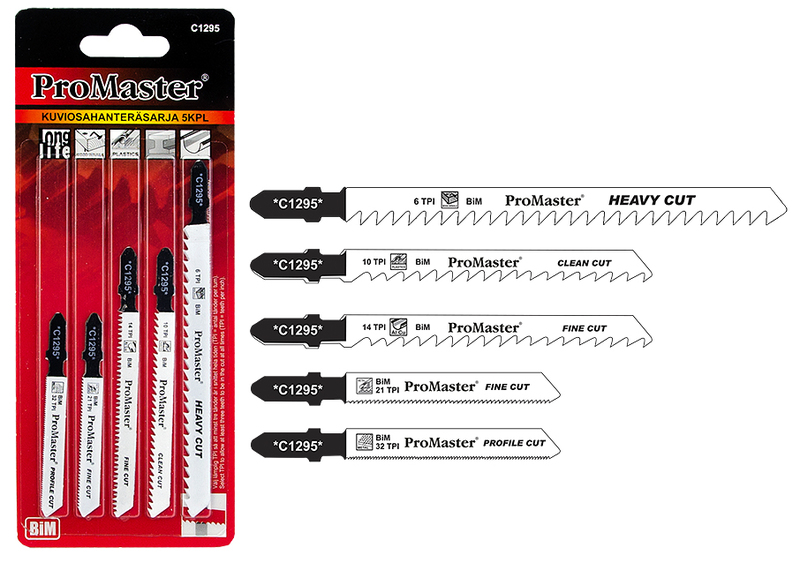 -HSS-BI -metallia, pitkä käyttöikä -sarjassa 5 terää -T-kara --6TPI/130 mm HEAVY CUT naulaiselle puulle, 5-100 mm koville ja pehmeille puulaaduille --10TPI/100mm CLEAN CUT vanerille, muoville... Lue lisää