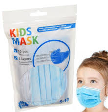 Lasten kasvomaskeja 10kpl Ikäsuositus 5-10 v. Väri sini-valkoinen