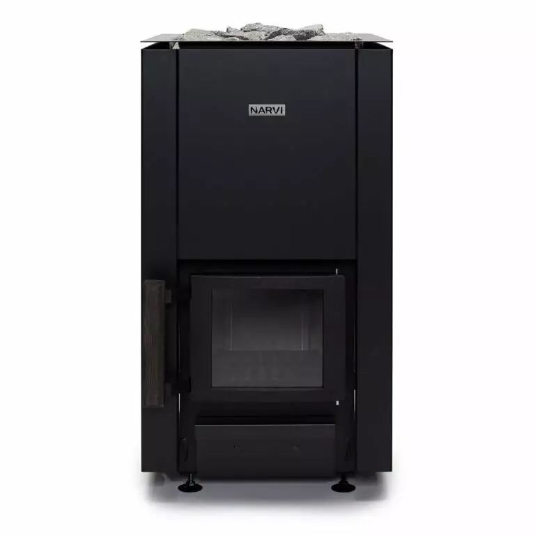 Puulämmitteisissä Narvi Kaamos -kiukaissa koruton muotoilu on toteutettu kestävin materiaalein. Kiukaan ulkokuoren kulmikkuus, pelkistetty musta yläkehys ja matta pinta luovat tyylikkään ja ajattoman ilmeen. Iso kivimäärä takaa tasaiset ja miellyttävät löylyt, jotka hemmottelevat saunojia.