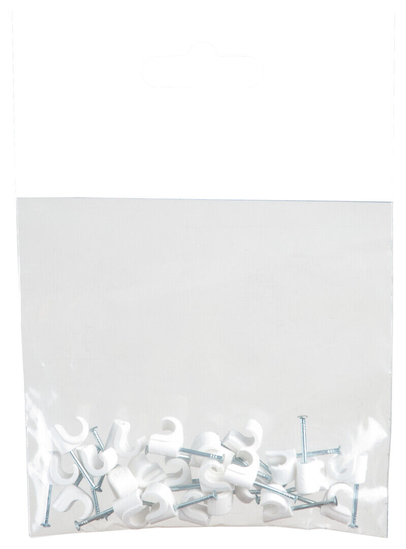 NAULAKIINNIKKEET PYÖREÄLLE KAAPELILLE. PAKKAUKSET 25 KPL/PUSSI. Naulakiinnikkeet, joissa on ohut naula. Kiinnitä johdot siististi. Valmistettu Euroopassa.