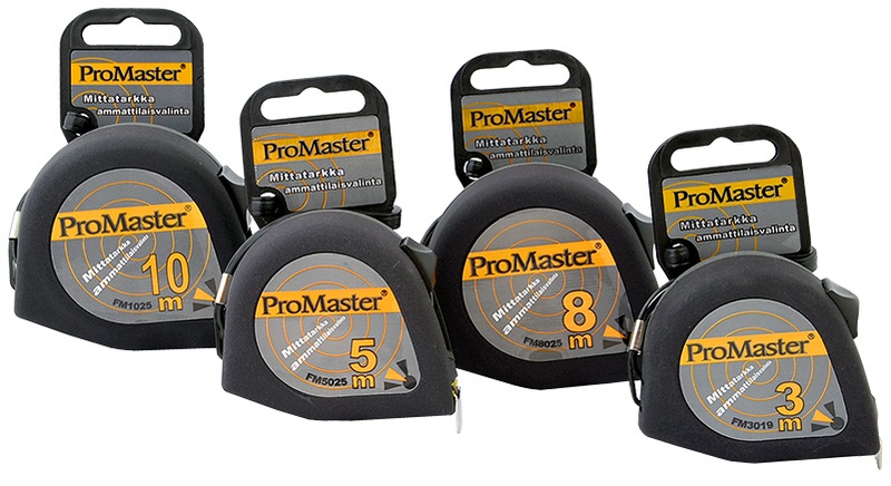 -mittanauhan pituus/leveys: 3 m/19 mm, 5 m, 8 m ja 10 m/25 mm