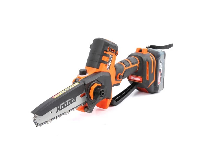 Akkukäyttöinen moottori- ja oksasaha. Voidaan käyttää metsän raivaamiseen, puun leikkaamiseen, oksien karsimiseen ja niin edelleen. Laipan pituus 6” Ketjun nopeus 6 m/s. Koneessa led näyttö akun varaukselle, öljysäiliö teräketjuöljylle. Sisältää yhden ketjun. Ei sisällä akkua eikä laturia.