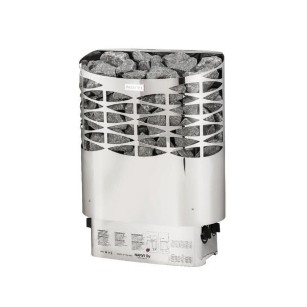 Narvi NS -sähkökiuas tarjoaa verkkokiukaan löylyominaisuudet ja seinäkiukaan helppouden. Kiuas on valmistettu korkealuokkaisista materiaaleista Lapin tehtaalla.. Asennusvaiheessa ohjauskytkimet on helppo asentaa joko oikealle tai vasemmalle puolelle kiuasta. Kiuas ei tarvitse erillisistä lämpötila-anturia, vaan se sijaitsee kiukaassa. Narvi NS on oiva valinta niille, jotka haluavat korvata aikaisemman seinälle asennettavan kiukaan verkkokiukaalla.