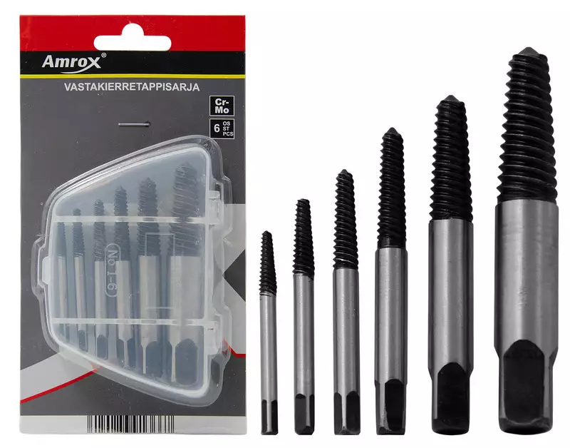 Amrox 6-osainen ulosvetosarja on suunniteltu katkenneiden ruuvien tehokkaaseen irrottamiseen vaurioittaen ympäröiviä osia mahdollisimman vähän. Korkealaatuinen kromi-vanadiumteräs takaa kestävyyden vaativassakin käytössä. Sarja sisältää kuusi eri kokoa, jotka kattavat laajan valikoiman ruuvikokoja. Erinomainen valinta niin ammattikäyttöön kuin tee-se-itse-projekteihin. Ikuinen materiaalitakuu takaa pitkäikäisyyden.