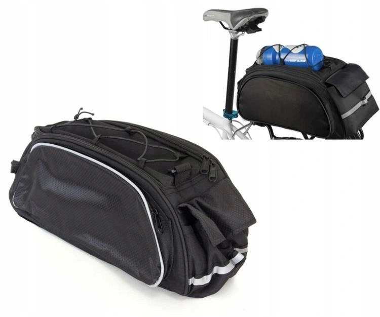 Tilava 4-lokeroinen 2-in-1-laukku polkupyörän tavaratelineelle, erittäin hyödyllinen pidempien pyöräretkien aikana.