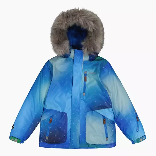 Lasten vedenpitävä toppatakki sopii hyvin kylmiin talvipäiviin. Takissa on kaunis ja lämmin tekoturkisreunainen huppu. Takin teipatut saumat lisäävät kosteudenpitävyyttä.