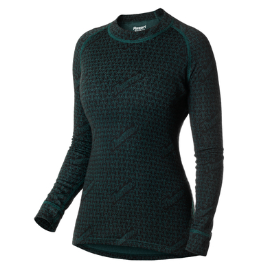 Merinovillapaita jossa polyesteri siirtää kosteuden ja merinovilla pitää lämpimänä.