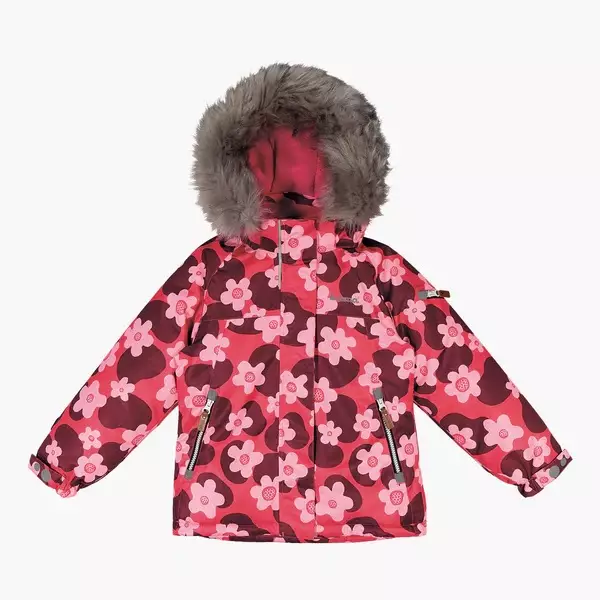 Vedenpitävä ja hyvin hengittävä toppatakki, joka pitää lapsesi lämpimänä ja kuivana kylmillä keleillä. Kauniissa takissa on tekoturkisreunainen, irrotettava huppu. Heijastinyksityiskohdat parantavat lapsen näkyvyyttä pimeällä.