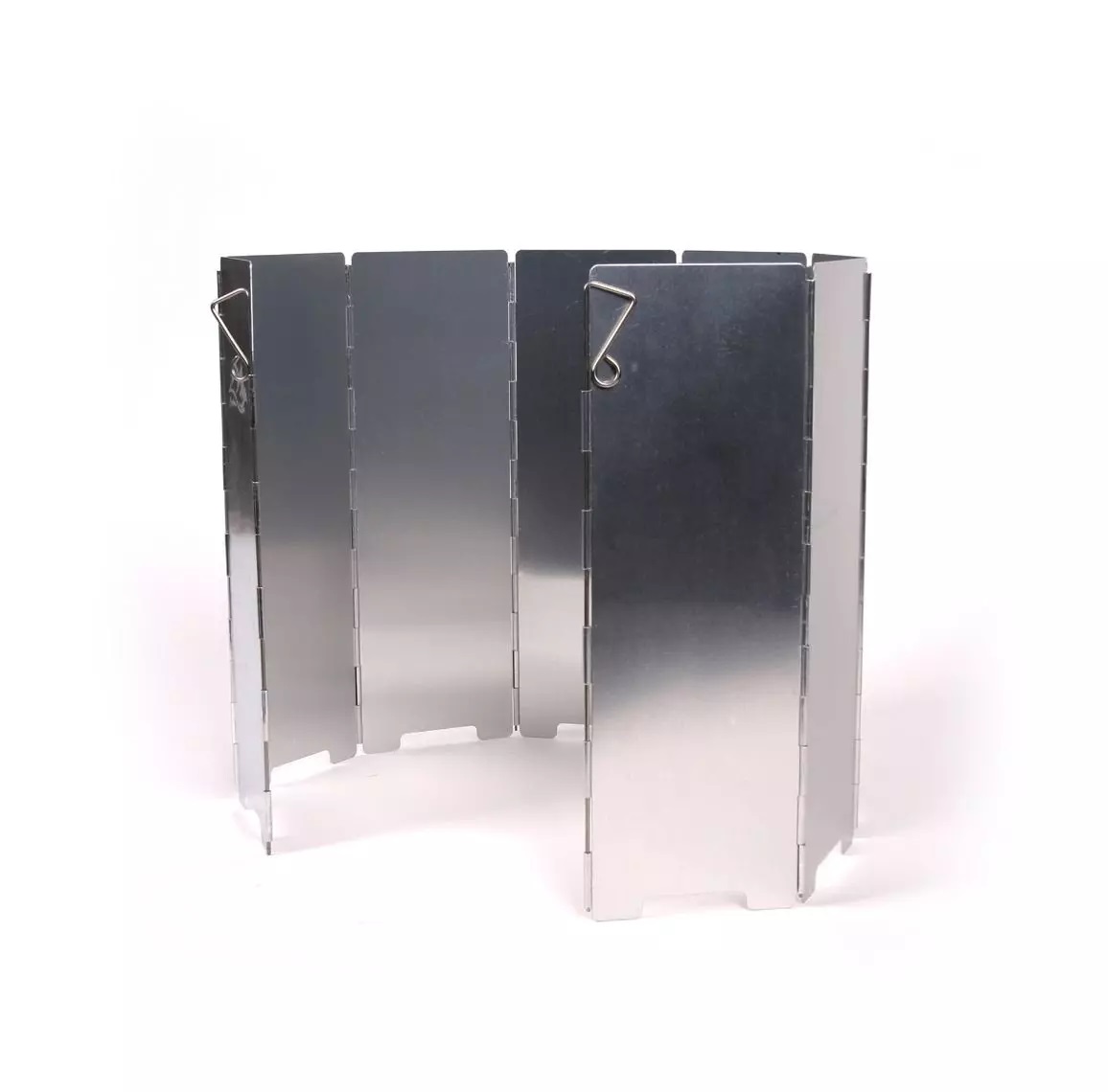 Vindbeskyttelse for stormkjøkken gir ideelle forhold for matlaging utendørs. Den beskytter flammen fra sterk vind. Festes til bakken med plugger. Takket være sin sammenleggbare konstruksjon er den lett å ta med. Inkluderer en oppbevaringspose. Mål: 66x24 cm. Vekt: 255 g. Laget av aluminium.