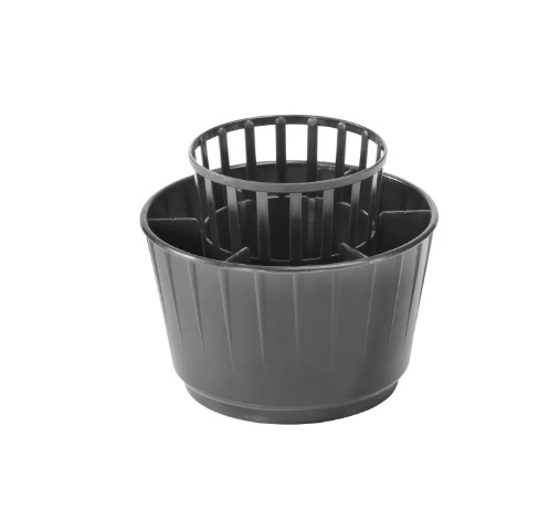 Praktisk rund bestikkholder med flere rom og avtakbar innside for drenering. 13 X 13 X 11 cm