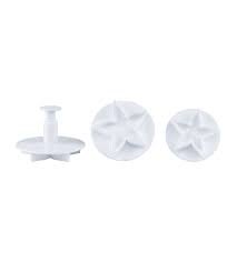 Liljeblomst snøhvit eller vakker blomstereng. Lag flotte dekorasjoner til kaker, bakverk og muffins med dekorasjonskutteren. Trykk kutteren ned i utkjevlet sukkerpasta eller marsipan. Trykk på knappen for å lage mønster på dekorationens overflate. Løft opp og frigjør kuttede mønster ved å trykke på håndtaksknappen. Ved å sette blomster i forskjellige størrelser oppå hverandre, kan du lage en fantastisk blomstereng! Pakken inneholder tre kuttere med en diameter på 5,5 cm, 6 cm, 7 cm. Materiale: plast. Anbefalt håndvask.
