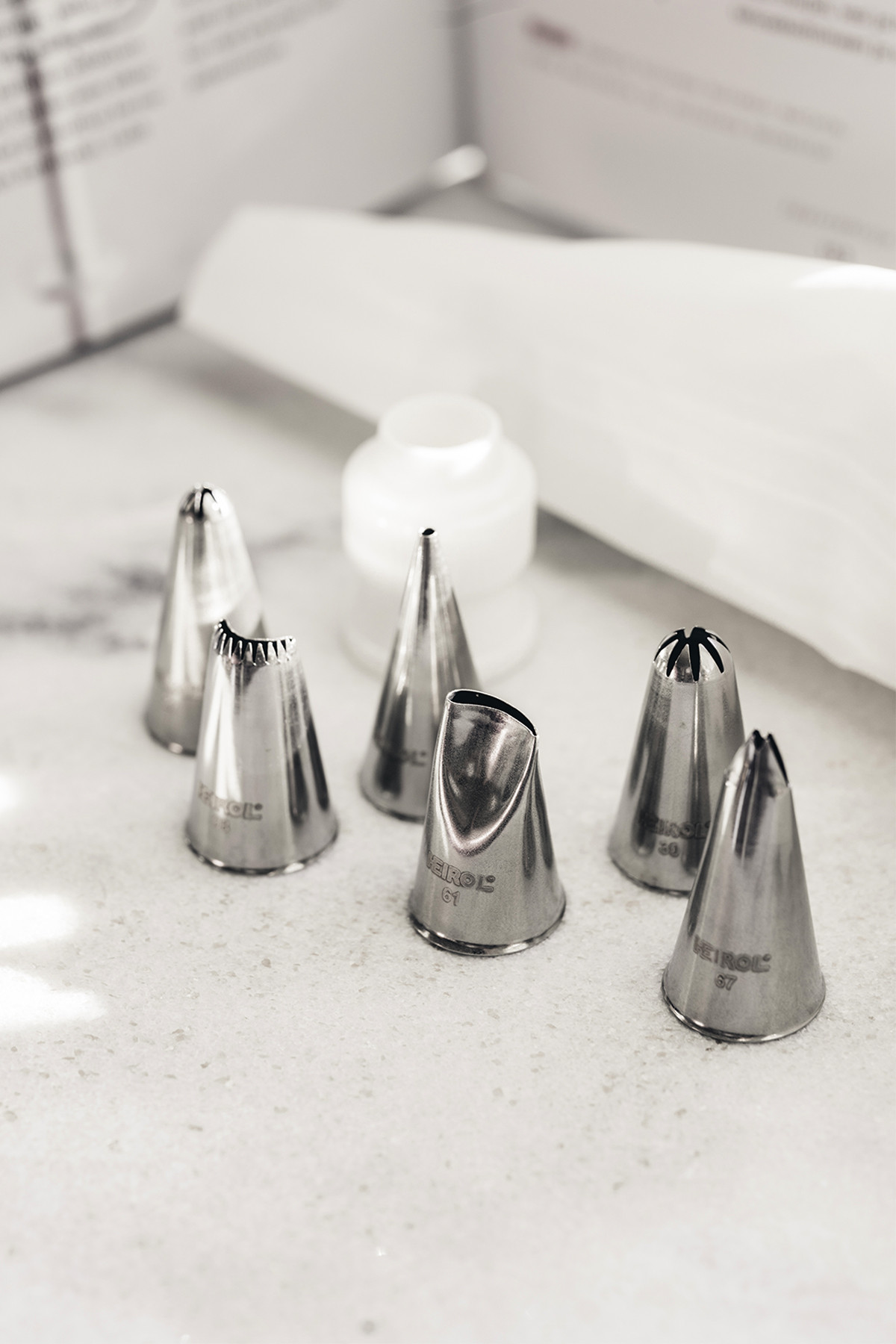 Kvalitetsdekorasjonssett for dekorering av bakverk, krem, sjokolade og puré! Settet inkluderer seks av de mest brukte dysene som gir vakre og varierte dekorsjonene:? Roseblad / buet rosedyse #61?... Les mer