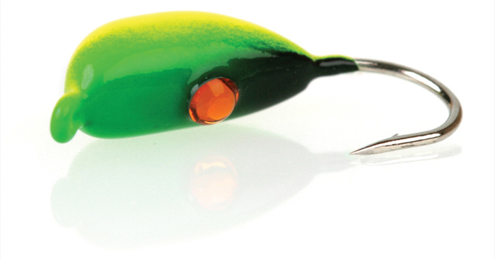En mormyshka som etterligner formen av en banan med en ekte og original Swarovski-stein