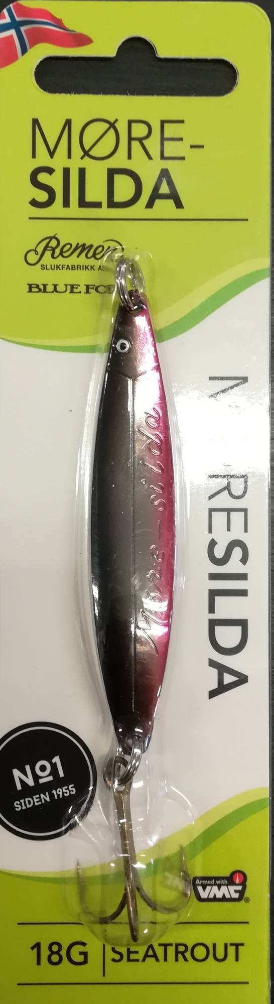 <p>Blue Fox Moresilda, utviklet i Norge i 1955, er en klassiker som fortsatt er effektiv for ørret- og laksefiske. Denne langtkastede skjesluk er ideell for laksefisk som ørret og laks. Den norske magasinet Alt om Fiske kåret den til ?TESTVINNER? i deres store sjøørretsluketest, noe som beviser Moresildas varige suksess. Den sterke konstruksjonen og tradisjonelle designet sikrer at sluken fungerer bra i kraftig strøm. De flotte fargenyansene passer for alle fiske- og vannforhold.- Effektiv skjesluk for laksefisk- Kvalitetskroker fra VMC- LangtkastendeModell: BFMS18Farge: Silver Black Red (SBLG)Vekt: 18g</p>