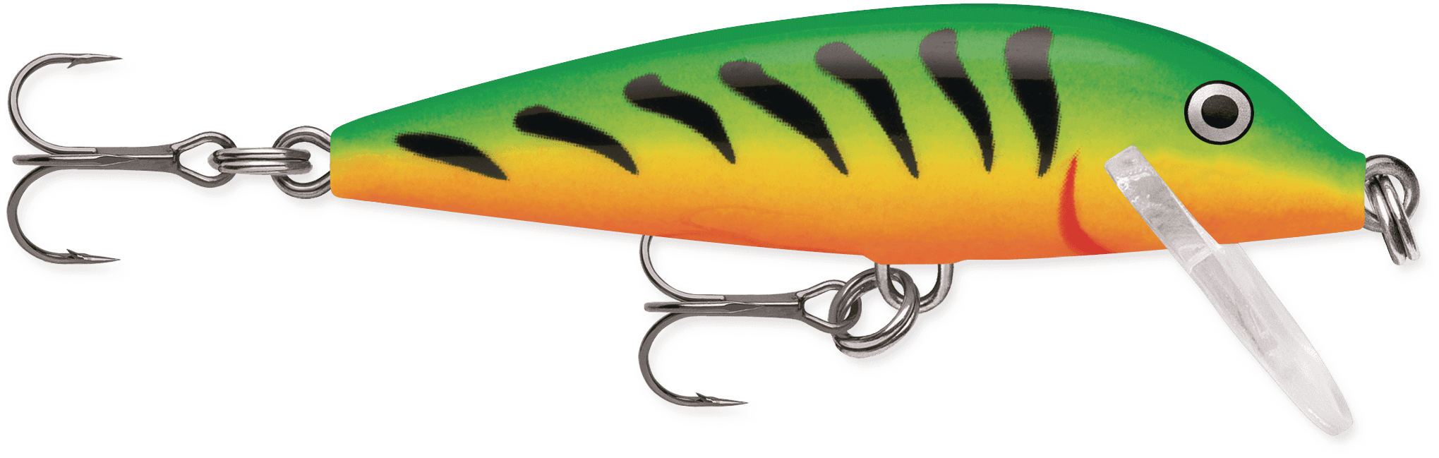 Rapala CountDown er en levende legende innenfor fiskeverdenen. Den skiller seg ut fordi den har en synkende balsakropp. Den følsomme og levende balsakroppen er kjent for å være svært fangstgivende. Den synkende kroppen gjør kastene lengre, muliggjør fiske i forskjellige vannlag (countdown-teknikk), får agnet til å svømme dypere enn tilsvarende flytende wobbler og forbedrer svømmebevegelsen fra langsom til svært rask. CountDown er også kjent som et godt elveagn fordi det tåler sterk strøm og kaster langt. Countdown-metodikken: La CountDown-sluket synke til bunnen mens du teller sekunder (CountDown synker cirka 30 cm per sekund). Hvis du på neste kast vil at agnet skal svømme nær bunnen, teller du en eller to sekunder færre før du begynner innsveivingen. Ved å redusere synketid i sekunder kan du få CountDown til å svømme nærmere overflaten. På denne måten kan du dekke forskjellige vannlag innenfor ett kastområde. Ved å bruke countdown-teknikken kan du fiske effektivt og presist. Dette er spesielt nyttig på populære fiskeplasser, fordi de fleste fiskere kaster i forskjellige retninger, men agnet svømmer alltid på samme dybde. Dette gir fiskere som mestrer countdown-teknikken en god sjanse til å lykkes! Du kan også stoppe innsveivingen et øyeblikk og la CountDown-sluken synke, slik at du kan irritere fisk i mellomvannlagene til å bite. Rapala-wobblere med svømmeplate er testsvømt og tilpasset for hånd. Rapala-wobblere bruker høykvalitets VMC-kroker. Alle Rapala-wobblere distribueres til fiskere over hele verden fra Vääksy-fabrikken, som også huser utviklingsavdelingen. Rapalas hjerte er i Vääksy! Svømmedybde:1,5-2,4 m Lengde:7 cm Vekt:8 g