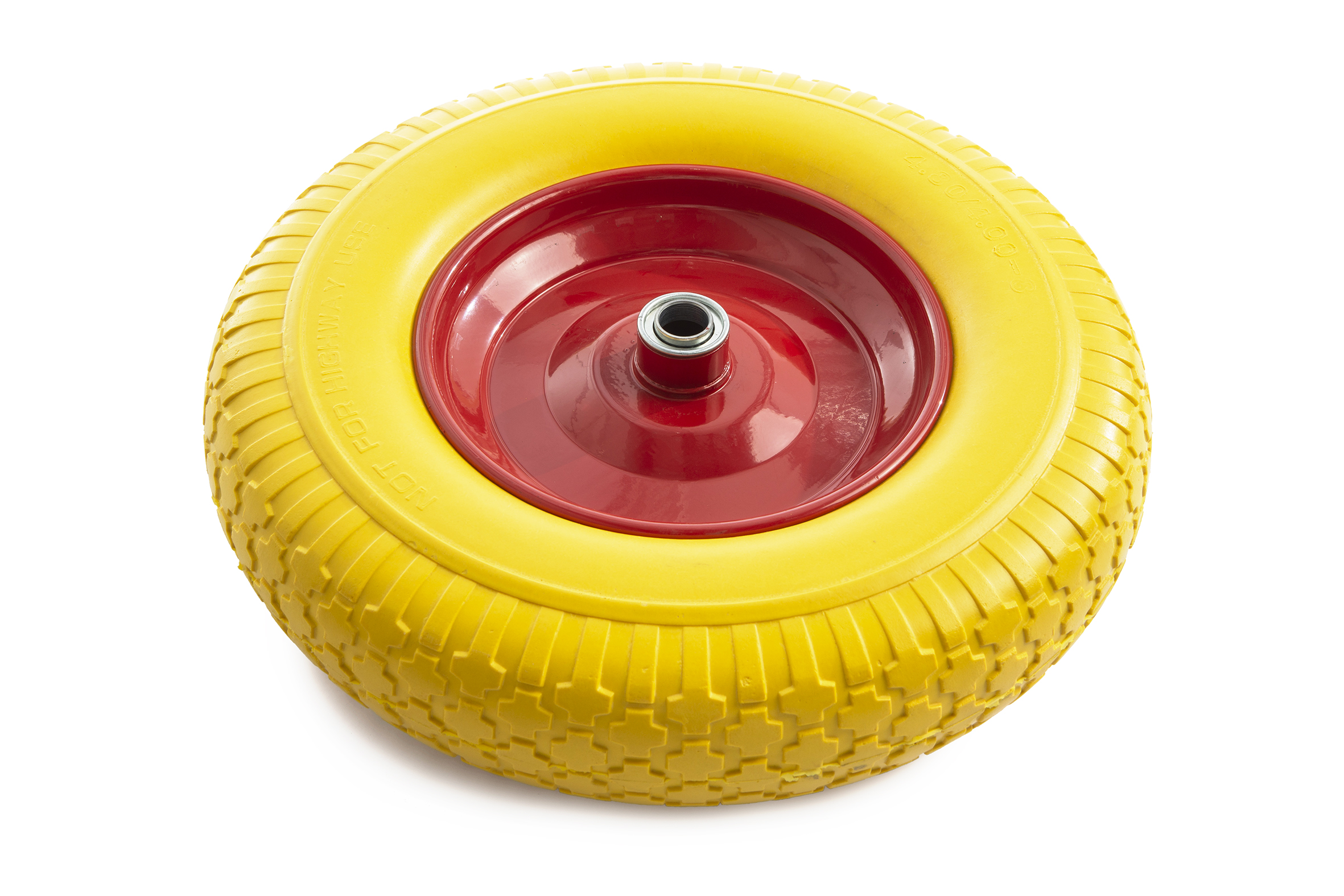 Gjennomhullet trillebårhjul 4,00-8" - Gjennomhullet - PU-materiale - Metallfelger - Bæreevne 150kg - Kulelager - Akselens hull 20mm