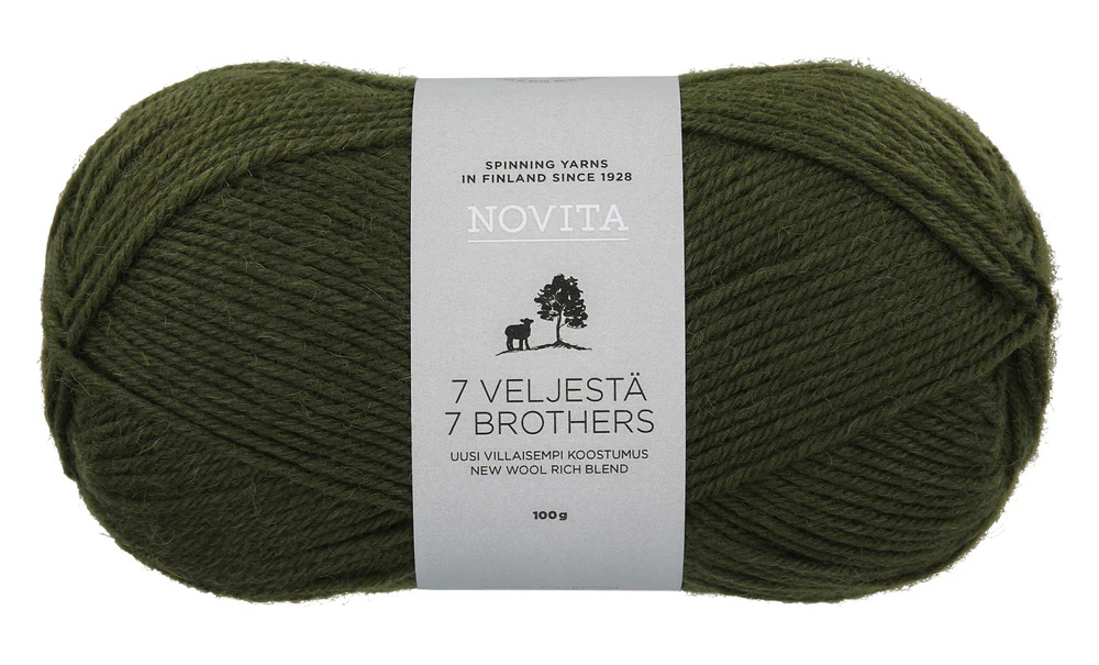 Norges mest populære sokkegarn blir enda bedre. Novita 7 Brødre har i flere tiår vært kjent som Finlands mest berømte og populære garn. Hemmeligheten bak populariteten er garnets ideelle sammensetning og riktige tvinn, noe som gjør det allsidig til forskjellige strikkeprosjekter. Nå er garnet forbedret med mer ull, hvilket gjør det mykere og enda mer behagelig å strikke med. 7 Brødre inneholder 80% varm ull og 20% polyamid, som gjør garnet slitesterkt. Det allsidige garnet er utmerket for alle typer strikkede plagg og tilbehør, spesielt ullsokker. 7 Brødre-garnet passer til alle internasjonale strikkeoppskrifter som anbefaler Aran-tykkelse garn. For en genser i størrelse M trenger du ca. 600 gram garn, og ett nøste er nok til et par sokker størrelse 38. Produktene kan maskinvaskes på 40 grader. Anbefalt pinnestørrelse er 4, til sokker 3.5. Aran-tykkelse garn anbefalt pinnestørrelse 5. Ett nøste på 100 gram inneholder 200 meter garn. Novita 7 Brødre-garnet er et nøkkelmerkeprodukt.